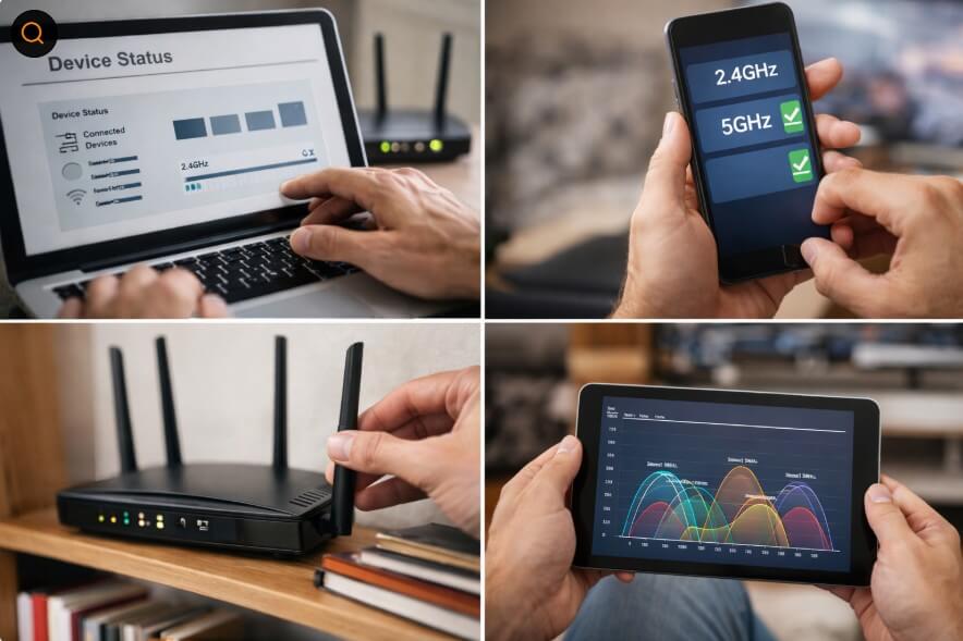 두 번째 원인은 주파수 대역 설정 문제다. 대부분의 공유기는 2.4GHz와 5 GHz를 동시에 지원하지만, 자동 설정 상태에서는 환경에 맞지 않는 대역을 잡는 경우가 흔하다. 특히 벽이 많거나 거리가 있는 공간에서는 속도가 갑자기 떨어졌다고 느끼기 쉽다.